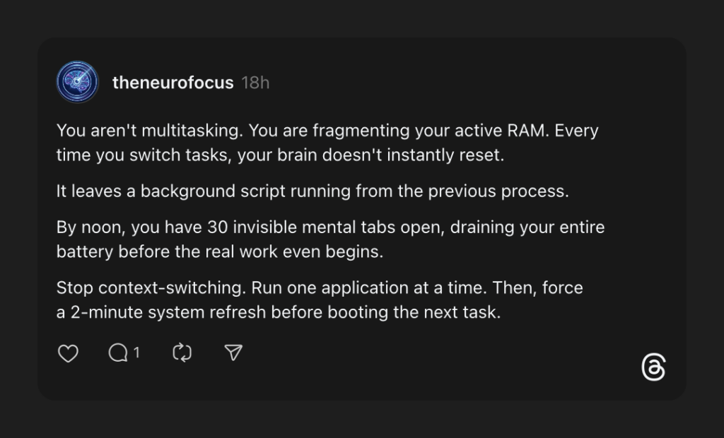 The entire economy is shifting to compete for the one resource that doesn’t scale: your ability to focus on one thing.